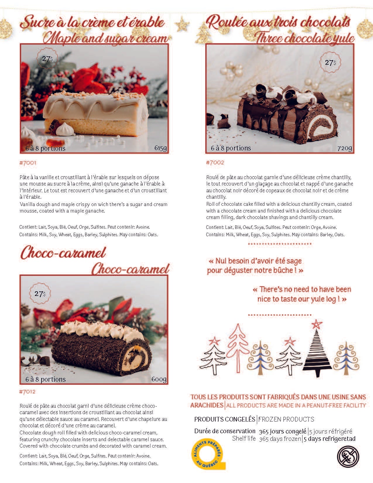 Grande variété : bûches festives et desserts classiques, parfaits pour tous les goûts.