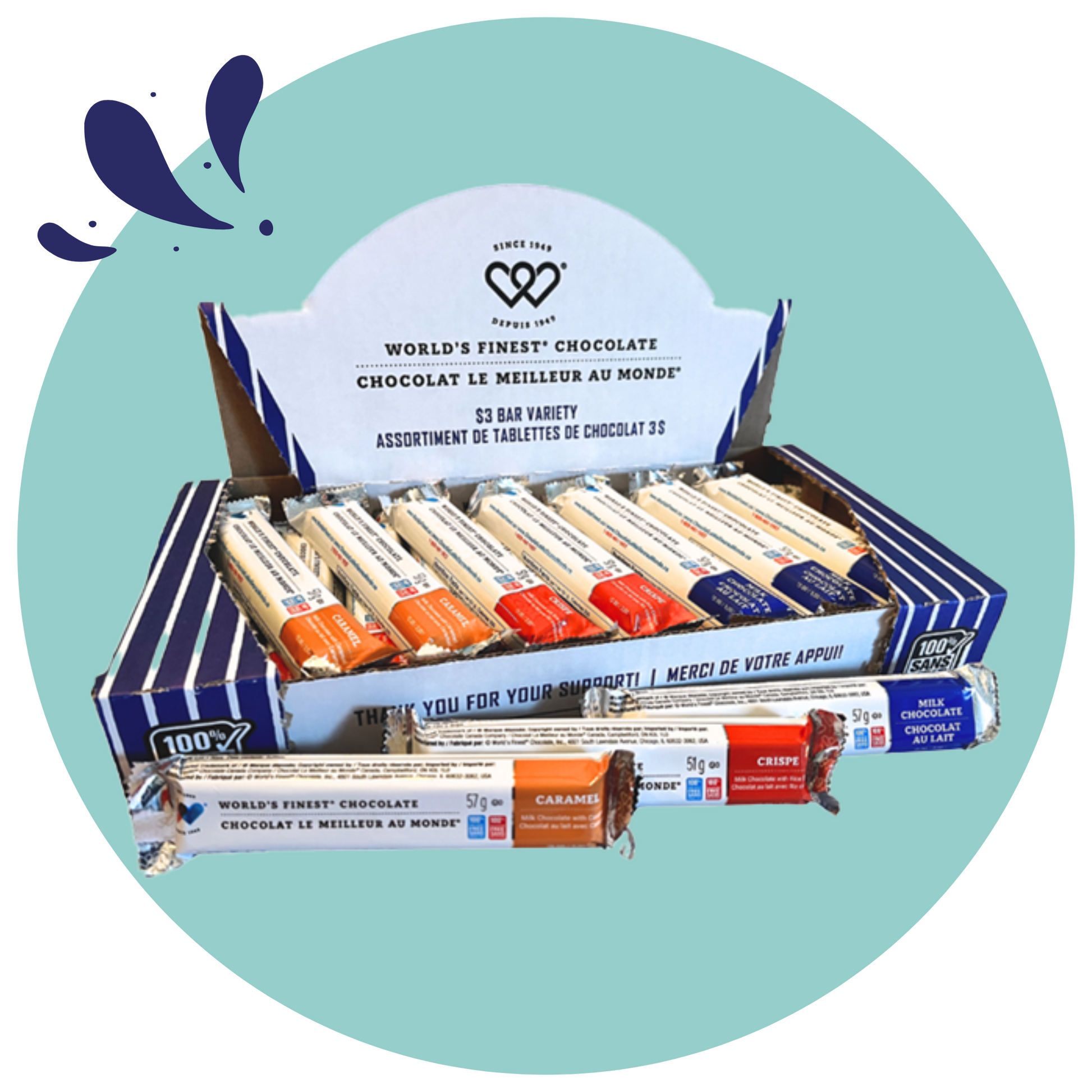 Chaque mallette contient un délicieux assortiment de tablettes de chocolat garanties sans arachides et sans noix, et ce, afin que tout le monde puisse en profiter en toute sécurité.